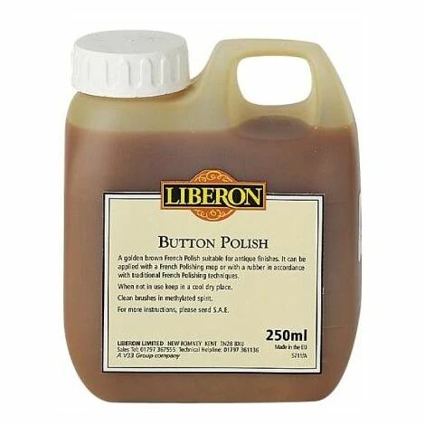 Liberon Button Polish is a golden brown french polish that is suitable for antique finishes. It can be applied with a French polishing mop or with a rubber in accordance with traditional French polishing techniques.