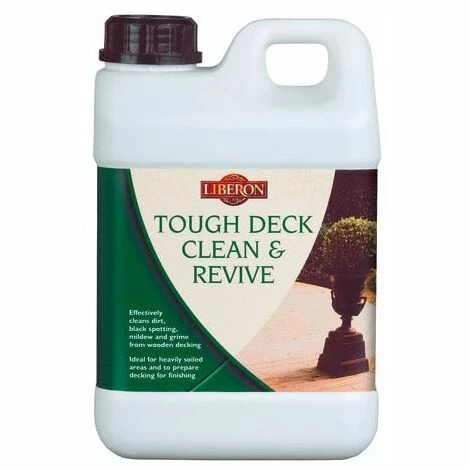 Liberon Tough Deck Clean and Revive has been developed for cleaning old, tired and dirty natural wooden decking which has dulled and faded over time. It helps to remove black spotting caused by mould or lichen from most types of wood and helps to prevent the regrowth of fungi to leave the surface clean and ready for refinishing. It is ideal for heavily soiled areas and to prepare decking for finishing.