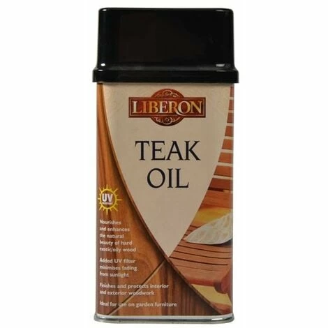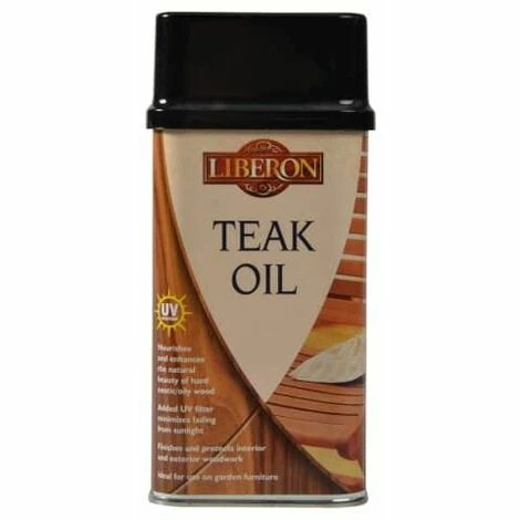 The Liberon Teak Oil is a blend of pure tung oil and linseed oil which nourishes and enhances the natural beauty of hard/exotic woods, including teak and iroko. With added UV filters for protection against fading from sunlight Teak Oil is suitable for interior and exterior use. Achieving the traditional cabinet makers finish on hard woods,Teak Oil products a hard wearing satin finish.